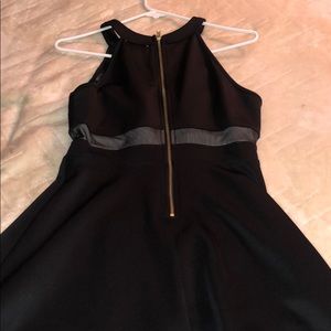 Super cute short black dress with golden zipper on the back and see through in the middle. Great material very silky. Worn once great condition.
