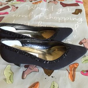 BLACK DRESS SHOES MODERATE HEEL WITH BEADED TRIM