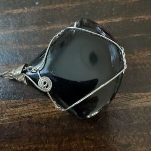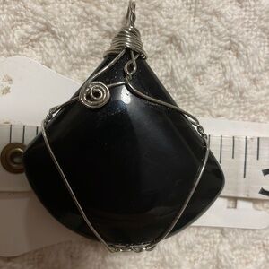 BLACK Druzy Triangular Stone with Handmade Scroll Design