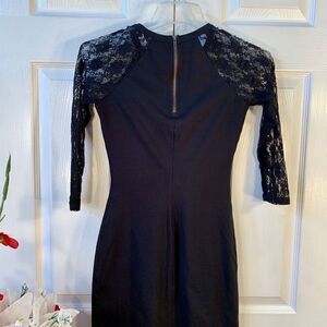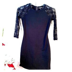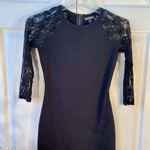 BLACK EXPRESS STRETCH DRESS w LACE SLEEVES SIZE XS