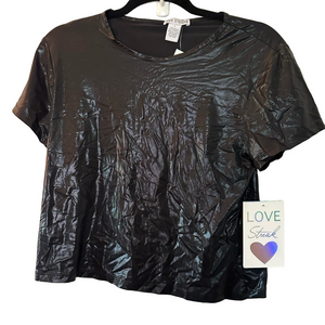 BLACK FAUX LEATHER LARGE SHORT SLEEVE TEE BY LOVE STREAK NWT