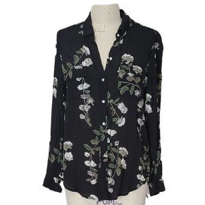 BLACK FLORAL CALVIN KLEIN BUTTON BLOUSE SIZE L