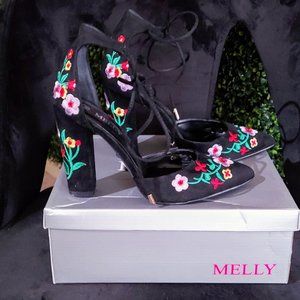 BEAUTIFUL EMBROIDERED BLACK FLORAL SHOE!