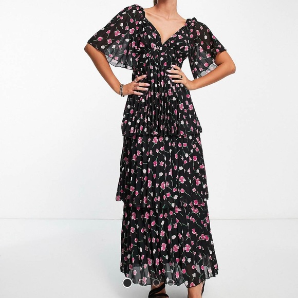 BLACK FLORAL RUFFLE DRESS
