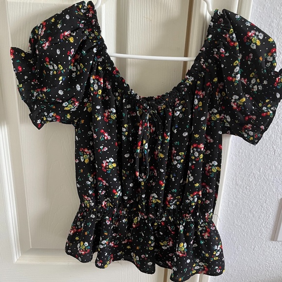 Women's Nordstrom black flower ruffle top