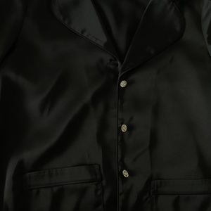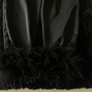 Here at NADINE MERABI we have spent time making these fit perfectly and feel wonderful when worn. With a feather trim to the cuff and satin binding on the shirt and trouser hem cuff to give a luxurious feel.