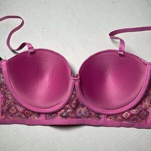 BLACK FUCHSIA Bra 36B Push Up Wide Band Stretch Lace Pink Geo Print Underwire