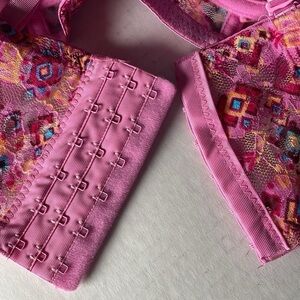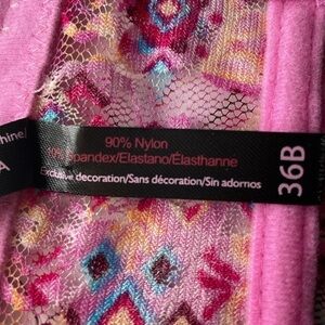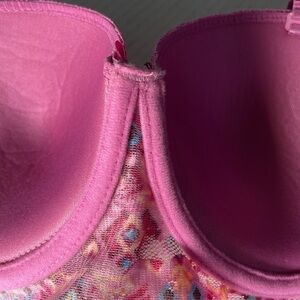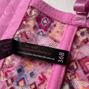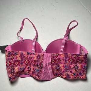 BLACK FUCHSIA by Secret Lace Bra 36B Push Up Wide Band Stretch Lace Pink Geo Print Underwire