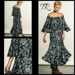 Romance and Feminine is what this floral dress expresses. Lose fitting neckline can be worn either on or off the shoulder and three quarter length sleeves. An adjustable tie with black tassels allowing for complete sexiness. Elastic waist for comfort. Simple side slits adds to this dress. Sewn with love made with 60% Cotton and 40% Polyester. Hand wash cold. IF YOU LIKE my ITEMS please FOLLOW ME for NEW LISTINGS 💋30% Off All Bundles💋
