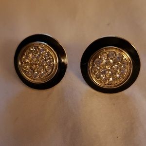 BLACK & GOLD ROUND EARRINGS WITH RHINESTONES