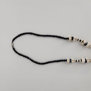 BLACK Glass White Puka Shells Necklace Triangle Pendant 9 1/2"