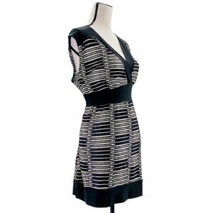 Black & Gray Printed Sleeveless Surplice V-Neck Mini Sweater Dress Women's Size Large