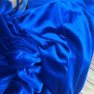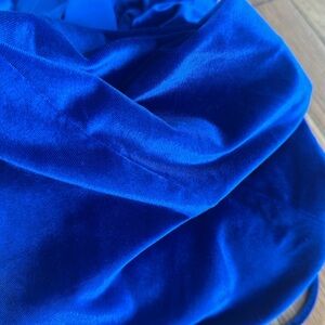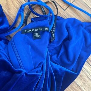 BLACK HALO Bowery blue Velvet Sheath rouched slit dress cocktail made in USA