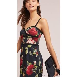 BLACK HALO X Anthropologie Daria Black Floral Adj Strap Sheath Size 8 MIDI Dress