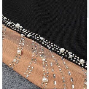 BLACK HEART SHAPED RHINESTONE PEARL NUDE MESH ONE SHOULDER FULL LENGTH FORMAL GOWN SIZE XL