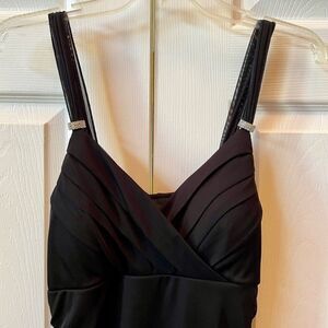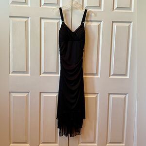 BLACK HI-LOW SLEEVELESS DRESS by SCARLETT SIZE 10 RHINESTONE EMBELLISHMENT ON THE STRAPS