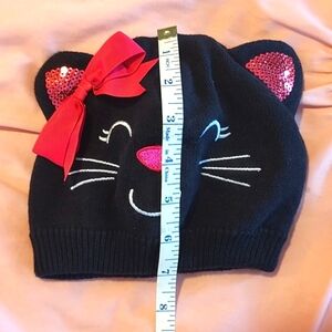 KOALA KIDS BLACK COTTON KNIT HAT with PINK GLITTERY EARS and NOSE, PINK CLOTH BOW. SIZE 6 - 12. 7" across. 7" high. NEVER WORN. Cute gift!