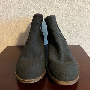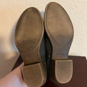 Black leather Kensie zipper boots in Gerona style. Shoes show wear on the bottom (pictures) but are in otherwise great condition. There is a small mark on the back of the right boot (see picture). Size 6.5.