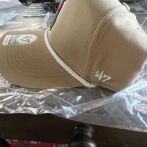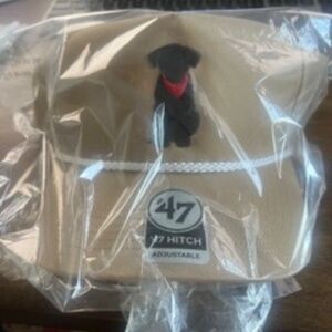 The '47 HITCH is a structured and curved adjustable with raised embroidery on the front, braided rope on visor, and a plastic snapback closure. Made from garment washed cotton twill.