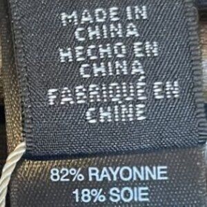 • 82% RAYONNE(RAYON) 18% SOIE (FRENCH FOR "SKIN OF SILK")