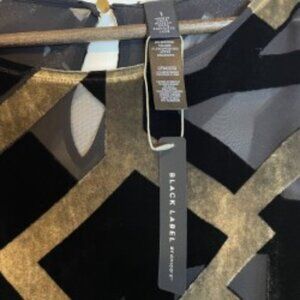 BLACK LABEL BY CHICO'S BLACK AND GOLD BURNOUT VELVET SHEER PULLOVER SIZE 1 NWT