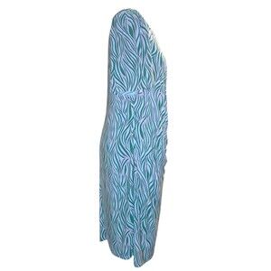 Evan Picone Black Label Dress Size 16W Party Stretch Ruched Waist Green & Pink Tiger Stripe Wrap
