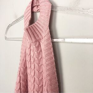 Adorable pink sweater top with halter neckline. Cable knit style. Sleeveless. Fitted with slight stretch. Buttons at the back of the high neck. Great condition! Womens size small.