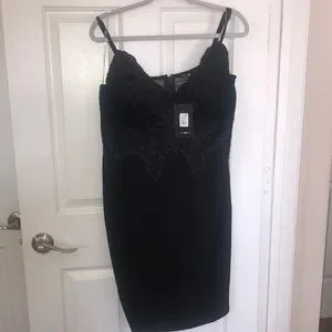 Fashion Nova LOOKING SO PERFECT BLACK LACE DRESS SIZE 1X‼️‼️🖤🖤 NEW WITH TAGS. This dress is as pictured on the model‼️‼️‼️ Strappy with a Zipper up the back 95% Polyester 5% Spandex
