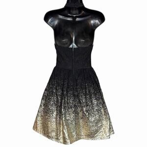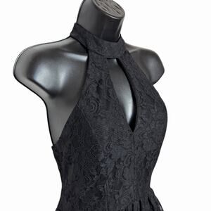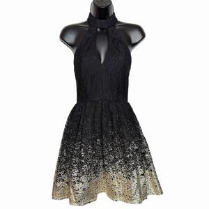 BLACK LACE HALTER MINI DRESS OMBRÉ GOLD FIT & FLARE COQUETTE SIZE 1/2 B DARLIN
