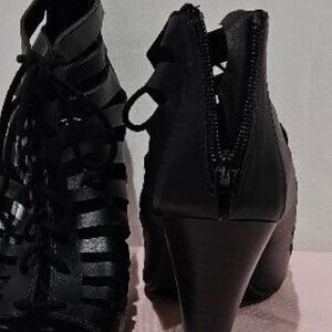 BLACK LACE UP CAGE HEELS WITH BACK ZIPPER Size 6 GOTH BOHO DANCE WHIMSIGOTH