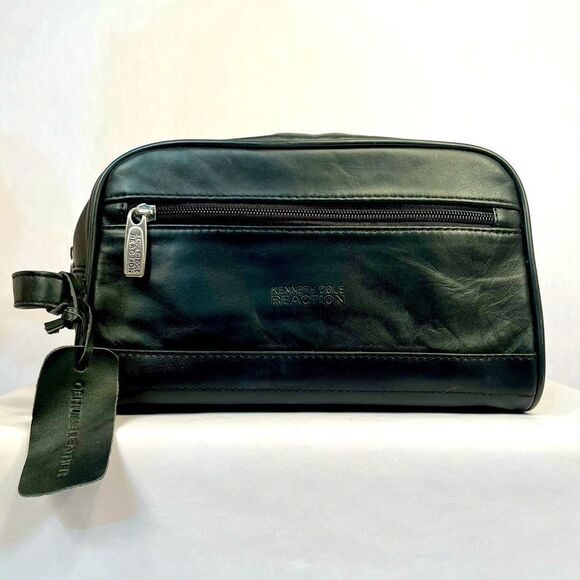NWOT BLACK LEATHER TOILETRY CASE BY KENNETH COLE
