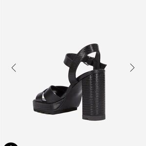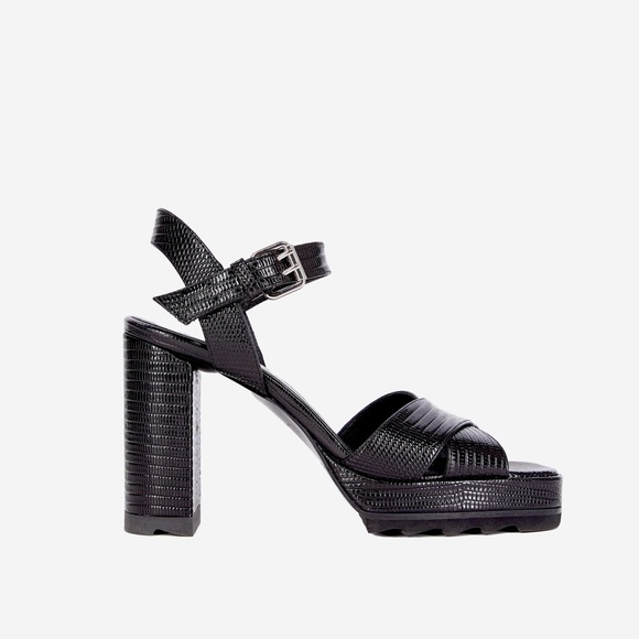BLACK LIZARD EFFECT LEATHER HEELED SANDALS