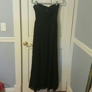 Black, floor length chiffon evening gown. Worn once, great condition. Strapless, size 4. **color is black, not navy as shown in first picture**