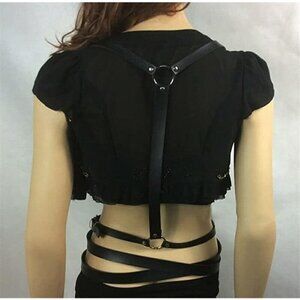 BLACK Layered Shoulder Waist Belt Strap Leather Body Cosplay BDSM Costume NWT