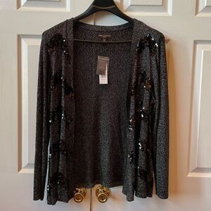 BLACK METALLIC WITH SEQUINS CARDIGAN SIZE 3X by DANA BUCHMAN NWT