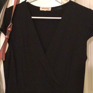 Black, form fitting mini dress with a deep v neck. Perfect dress for a night out or formal occasion. The dress is a tight fit with stretchy material. So cute🥰