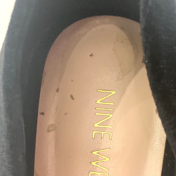 Good pre Owned condition. There are tiny imperfections inside right shoe.—see last two photos.