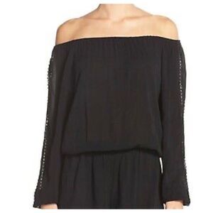 This jumpsuit features crochet lace on both sleeves, an elastic waist, pockets, and an elastic neckline so that it can be worn on or off the shoulders. Belt it and pair it with heels for a dressy evening look, or wear it with sandals and a floppy hat for a day at the beach!
