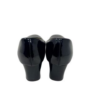 BLACK PATENT LEATHER SHINY Block Heel Pumps 60S MOD SHOES 10