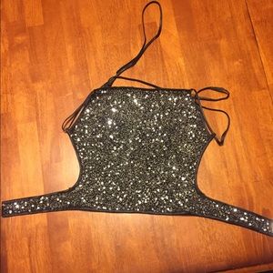 BLACK SKIRT SEQUIN TOP. This prom dress will need to be dry cleaned because it has been in storage.