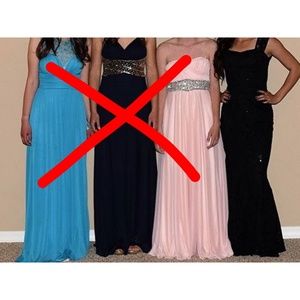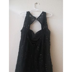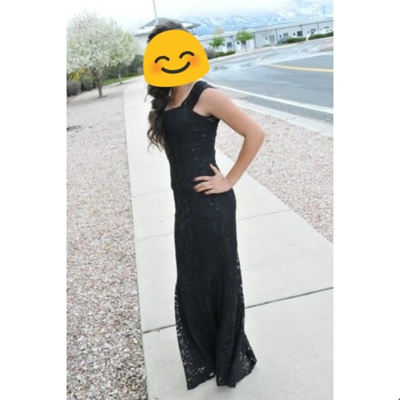 This prom dress is beautiful and very flattering with a sweetheart neckline, slight mermaid figure, lace and scattered black sequins! Only worn once and in super good condition!! Make an offer and comment any questions!!