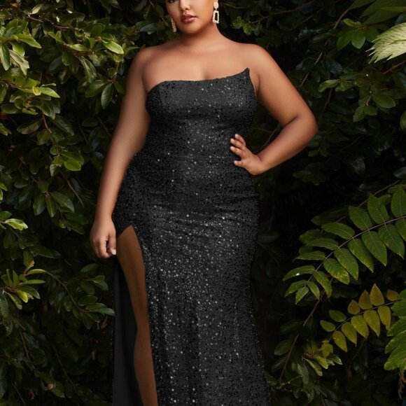BLACK Plus Size PROM STRAPLESS A-SYMETRICAL CURVY FIT SEQUIN GOWN DRESS CD165