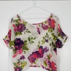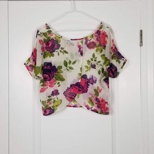 BLACK Poppy Boho Sheer Floral Printed Crop Top