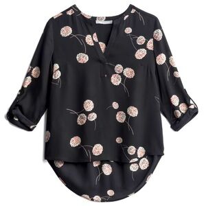 BLACK RAINN Black Floral V Neck Blouse 3/4 Sleeves Semi Sheer Dark Feminine L