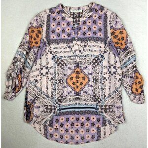 BLACK RAINN - WOMEN'S PINK FLORAL PRINT TUNIC TOP - SIZE L