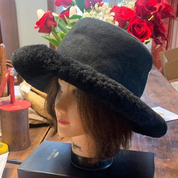 BLACK REAL SHEARLING LAMBSKIN SHERPA HAT WITH BRIM. THIS is how you combine WARMTH and STYLE! Real,soft and dense shearling in blackest black,deep brim to keep the blizzard away!No size tag,so you must see measurements for your best fit. No smoke,odors,eta,stains tears. LAST PHOTO FOR STYLE AND PRICE REFERENCE ONLY!Winter,polar,chic,ski,apres ski,European,stylish,thermal,effortless,timeless,sophisticated,funky,Scandigirl,edgy,Langenlook,art teacher,natural,shearling,Sherpa,Nordic,weatherproof,minimalist,fisherman,cabincore