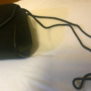 BLACK PLEATED RHINESTONE EVENING BAG CLUTCH CROSSBODY