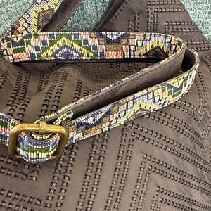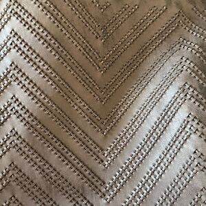 Stylish gray women's bag/purse/bookbag featuring a unique chevron pattern. Perfect for everyday use with a colorful strap for added flair. Three pockets on the inside and a zipper to close and keep everything inside secure. Used in excellent condition. Adjustable strap so that you can decide the length (detachable as shown). Measures 16.5” length x 5.25” depth x 12” height.