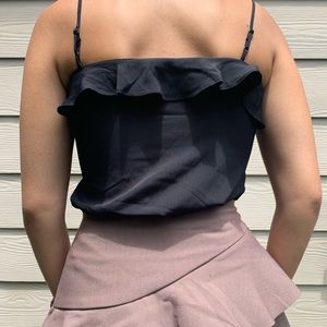 Black ruffle tank Size 0 Chiffon material Sheer but not see through Adjustable straps