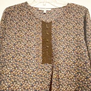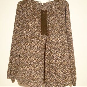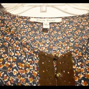 BLACK Rainn lightweight Blouse Blue Floral Pattern Large